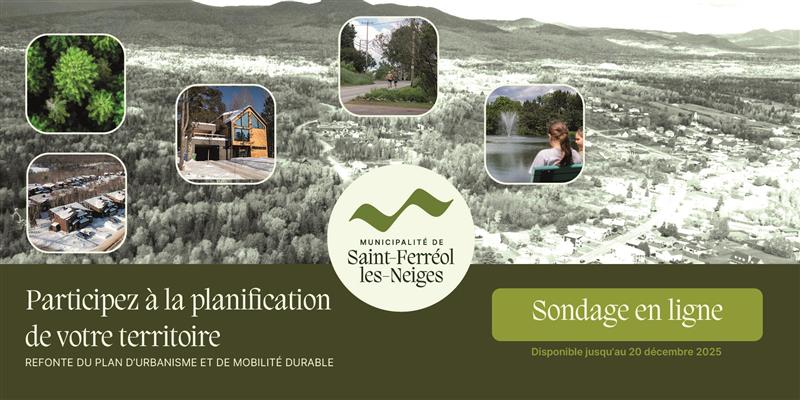 En 2025, la municipalité de Saint-Ferréol-les-Neiges entreprend une démarche majeure : la refonte complète de son plan et de ses règlements d’urbanisme, ainsi que l’élaboration d’un nouveau Plan de mobilité. Cette mise à jour est essentielle pour mieux refléter les réalités actuelles de notre communauté — et pour préparer un avenir à la hauteur de nos ambitions.