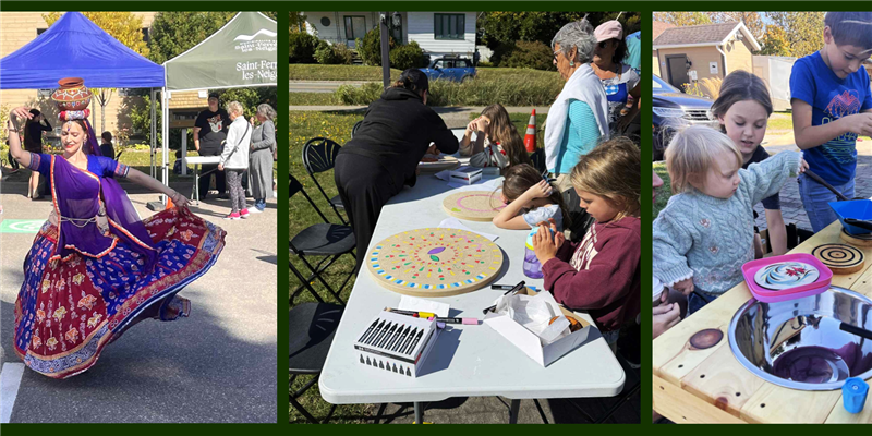 Dimanche dernier à la Place de l'Église, le Marché public a pris des airs de fête avec une belle programmation: création de mandalas collectifs, repas indien, atelier et démonstration de danse indienne, station de tatouage au henné, jeux libres et artisans sur place. Une journée haute en couleurs et en découvertes qui a fait le bonheur des petits et des grands! Merci à toutes et à tous pour votre participation.