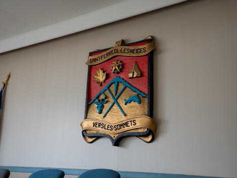 Ces cours d’eau évoquent le caractère récréotouristique de la municipalité, tout comme la feuille d’érable (la forêt), le panache (la faune et le gibier), le poisson (la pêche sportive) et la tente (l'hébergement et l'hospitalité).