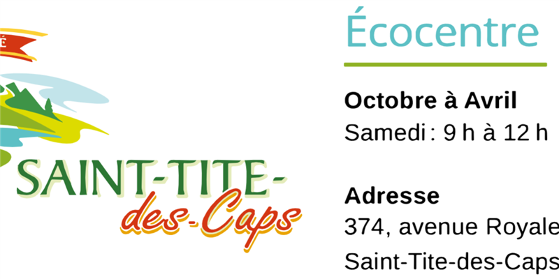 Pour connaître la liste complète des matières acceptées, nous vous invitons à consulter le site Internet de la Municipalité de Saint-Tite-des-Caps, à la page Écocentre.