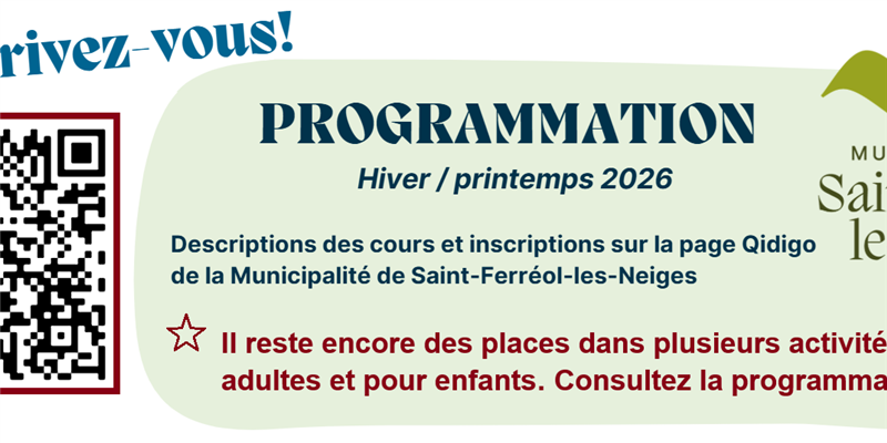 Bonne nouvelle! Il reste encore des places dans plusieurs activités offertes aux adultes et aux enfants. C’est l’occasion idéale de bouger, de découvrir de nouvelles passions et de profiter de la programmation de loisirs.