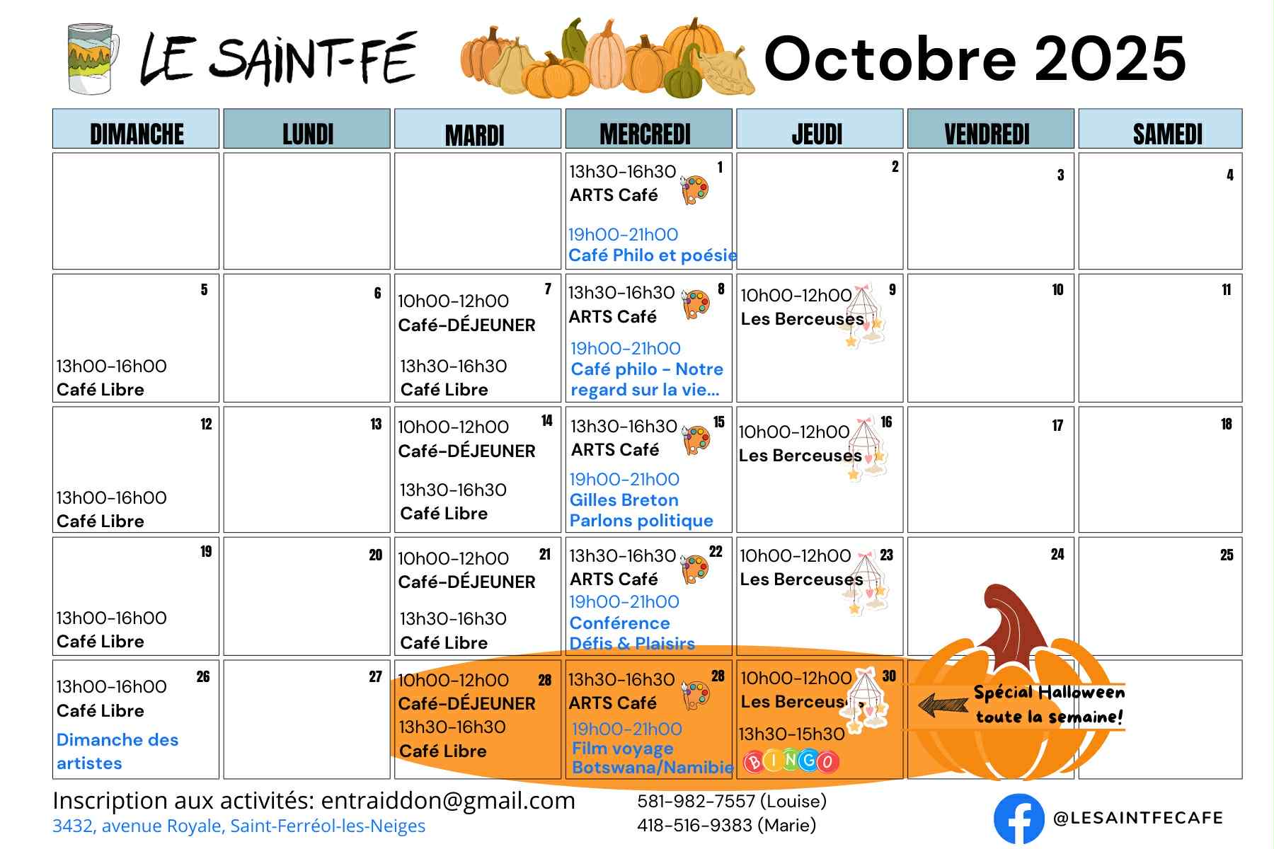 Pour toute information, vous pouvez joindre la responsable au 581-982-7557. Vous pouvez également contacter l'Espace Troc'Don par courriel : espacetrocdon@gmail.com.